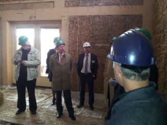 Geïnteresseerd in de ontstaansgeschiedenis, de rolverdeling van de betrokken partijen en hoe allerhand zaken zijn geregeld bij dit unieke project, stelden de gedeputeerden, onder aanvoering van de Commissaris van de Koning Clemens Cornielje, allerlei vragen aan Mare Nynke, die namens Iewan tekst en uitleg gaf over het ontwikkeltraject. Ook Talis, Vastbouw en de WBVG vertelden vol trots hoe ze bijdragen aan de realisatie van dit “pareltje van burgerinitiatief”. Er werd natuurlijk van de gelegenheid gebruik gemaakt om de provincie hartelijk te bedanken voor hun (subsidie)bijdrage.