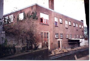 In de jaren ’50 is het pand gebouwd op de plaats van het oorspronkelijke pand dat op het eind van de oorlog door brand werd verwoest. Na het vertrek van een jaloezieënfabriek diende het leegstaande gebouw tot aan de kraak slechts af en toe als opslag voor een verhuisbedrijf. Ergens rond 1982/’83 is het pand gekraakt, twee jaar na de kraak kopen de krakers, inmiddels verenigd in een woonvereniging, het pand uit de inmiddels failliete boedel van de eigenaar. In die tijd is het pand geheel met eigen middelen verbouwd. Er was woonruimte voor vijf mensen, een atelier, een galerie en een gereedschapsuitleen. De kosten voor verdere renovatie blijken echter zó hoog dat de bewoners in 1988 besloten het pand door te verkopen aan de WBVG, om daar vervolgens van te gaan huren. Naast woonruimte voor een woongroep van vijf personen zijn er in het pand werkruimtes, o.a. ateliers, metaalwerkplaats Staal in Stijl en een boekingskantoor voor alternatieve popmuziek, Paperclip Agency.