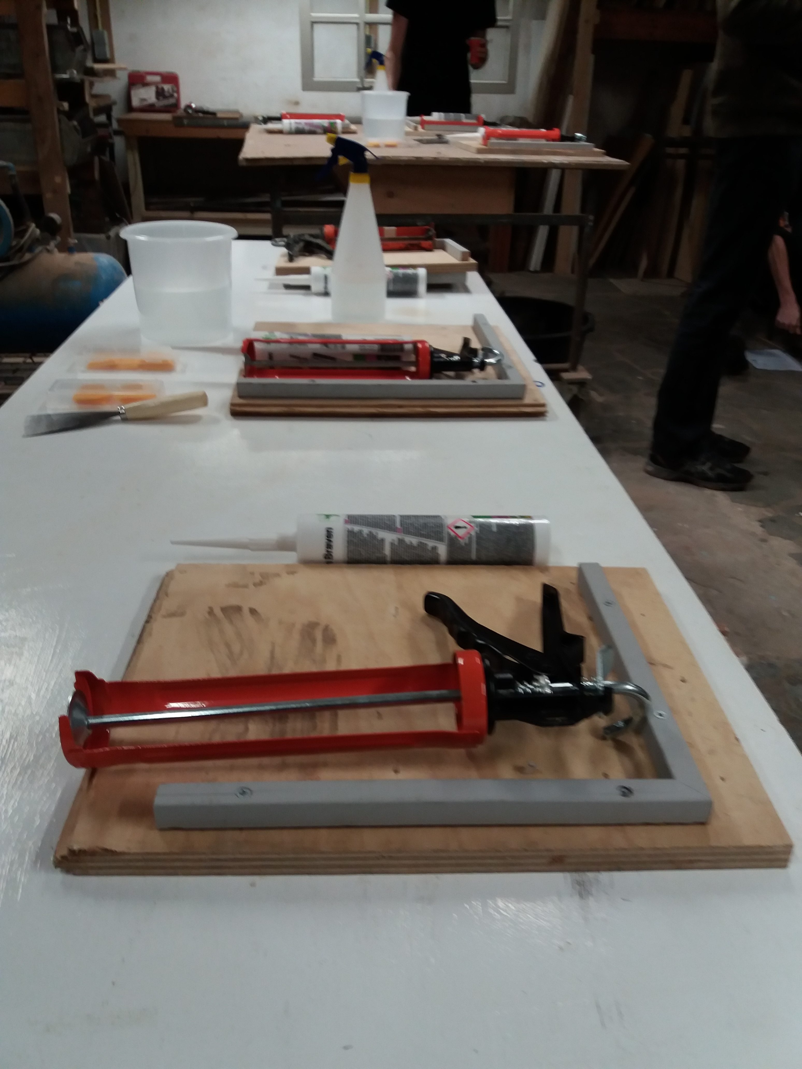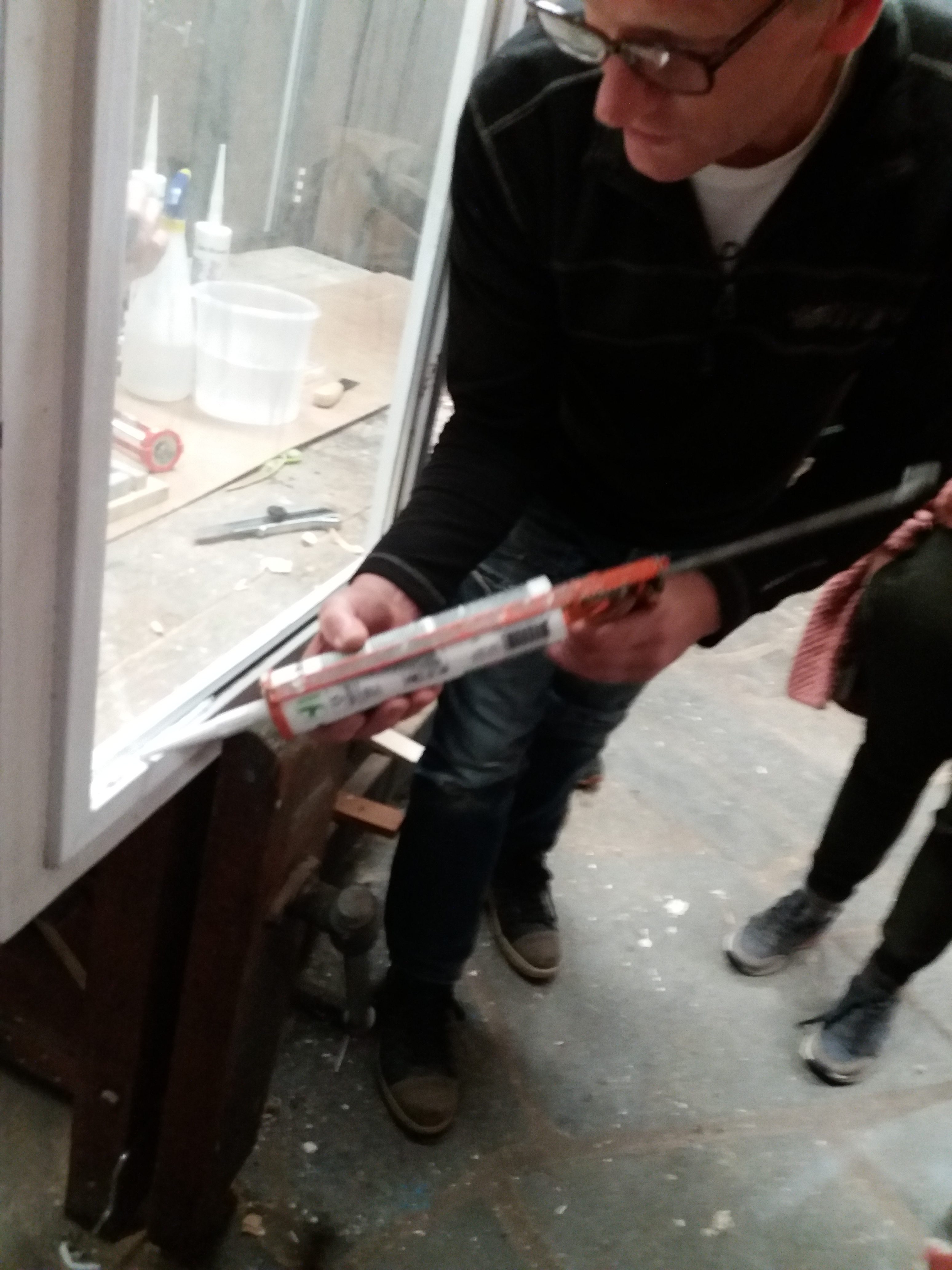 Het onderwerp was binnenschilderwerk en dan met name het bijhorende kitwerk. We merkten in de praktijk dat lang niet iedereen overweg blijkt te kunnen met beglazingskit en dachten: dat kan strakker. Na een lekker verzorgde maaltijd gingen we met frisse zin aan de slag en wat bleek: met een beetje uitleg en vooral veel doen bereikten de deelnemers al veel betere resultaten!